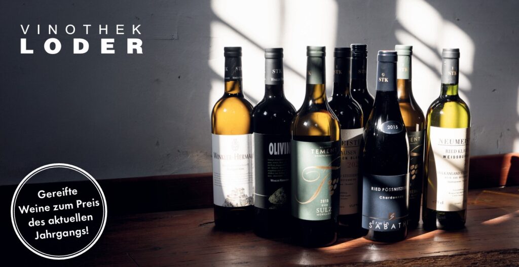Vinothek – feine Weine, oft zu Ab-Hof-Preisen.