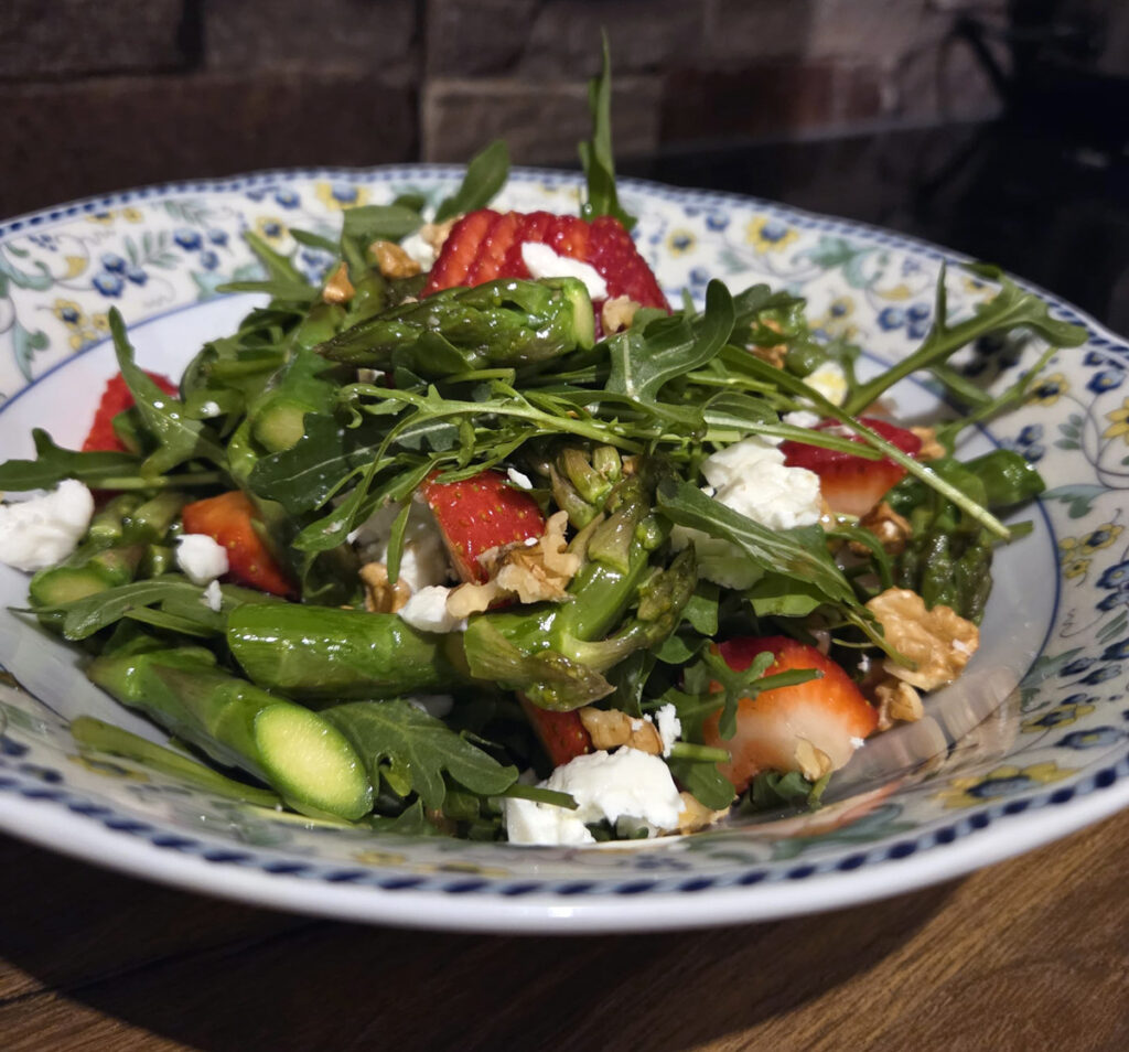 Zutaten: Dressing: Zubereitung: Spargel waschen, Enden entfernen, in Stücke schneiden. In etwas Öl 3–5 Minuten anbraten, bissfest garen, abkühlen lassen. Erdbeeren waschen, putzen und halbieren oder vierteln. Rucola waschen und […]